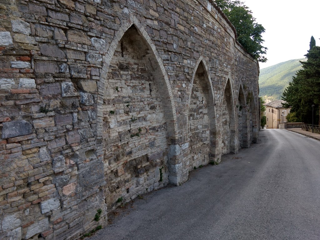 Algo que me impressionou foi a marcante presença do Castelo – Na realidade , chamado assim, mas é parte do Convento de Santa Chiara. De qualquer ponto da cidade podemos avistar o Castelo que de noite recebe uma linda iluminação. É como um imã a chamar nossa atenção constantemente.