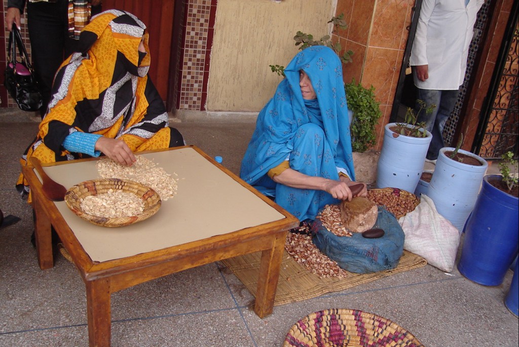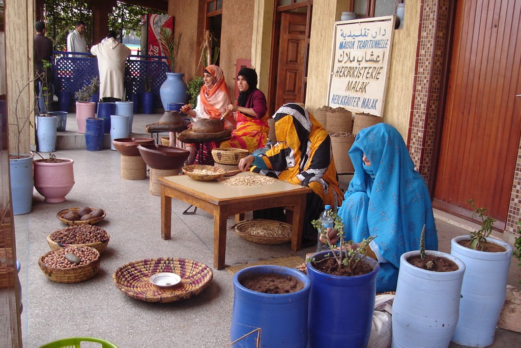 é uma fábrica artesanal de óleos, essências e perfumes. Apesar de não termos visto muitas mulheres trabalhando em Agadir , nesse local havia cinco delas, todas usando o Jabalin e com cabelos cobertos.