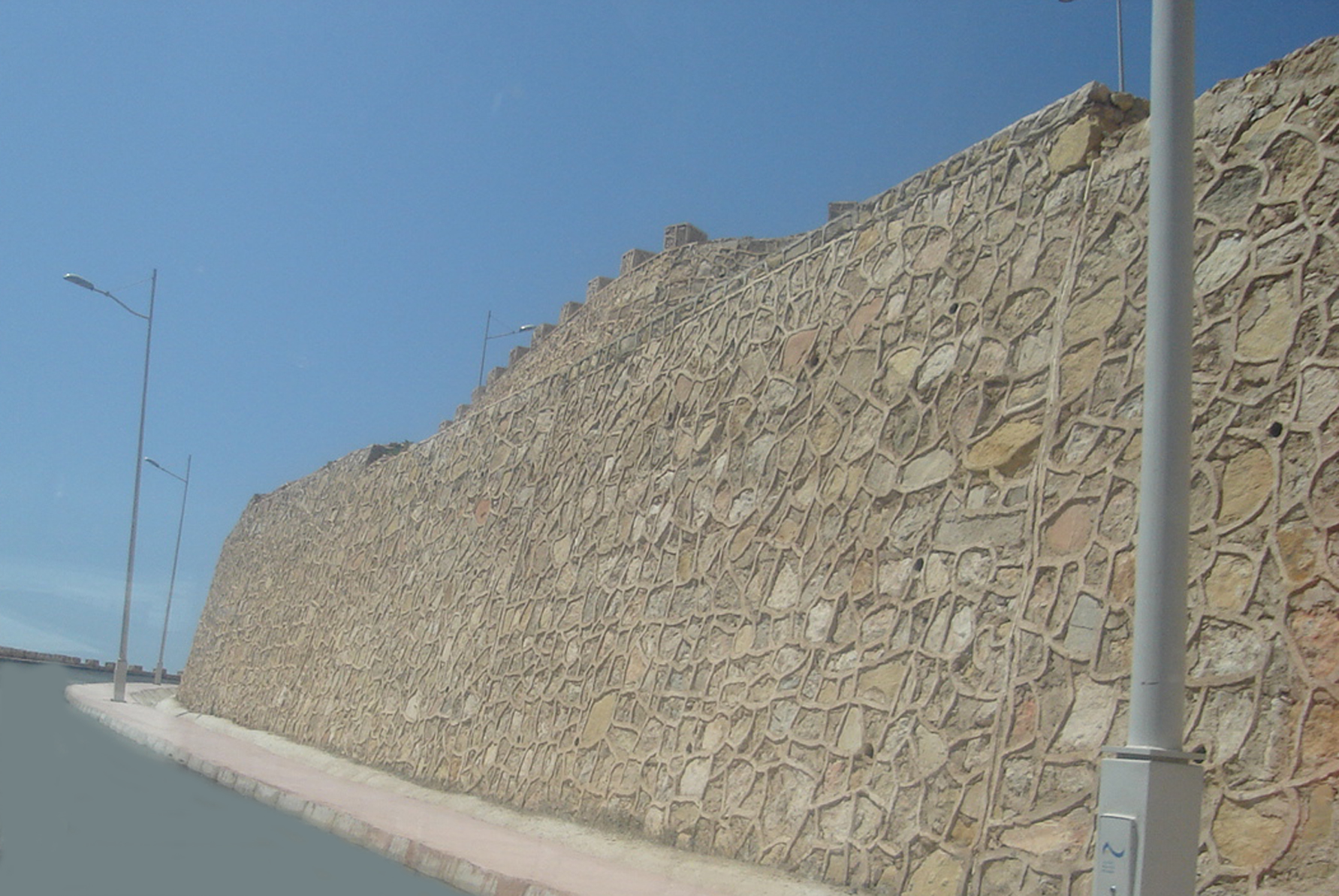 A partir da cidade por todo caminho tem um muro arrimo de pedra .
