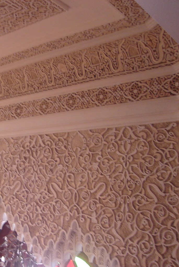 No interior os detalhes me deixaram paralizada!! Esse é um trabalho de entalhe em gesso, segundo eles, pode ser feito parcialmente com molde, mas essa barra foi esculpida a mão.