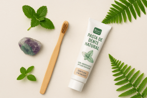 Aqui em casa, uso a pasta Boni Natural — livre de flúor, parabenos, sulfatos, corantes artificiais ou qualquer outro químico agressivo.